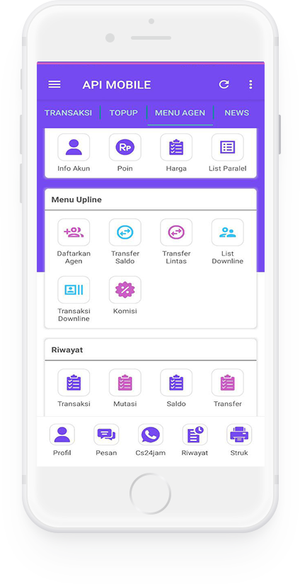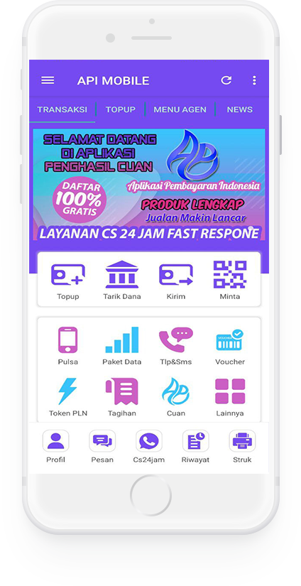 API MOBILE lahir sebagai wujud keseriusan kami dalam berupaya memberikan layanan terbaik serta membangun sistem automasi yang efektif dan efisien demi kenyamanan konsumen dalam bertransaksi. Berbekal pengalaman kami di bidang marketing Pulsa & PPOB, kami yakin akan akan menjadikan API MOBILE sebuah aplikasi yang dibutuhkan masyarakat